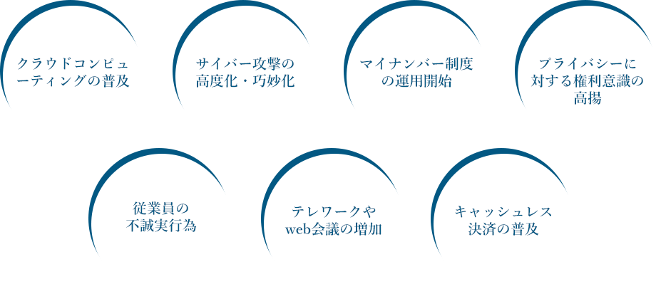 個人情報に関する法制の厳格化やサイバー攻撃の巧妙化等、