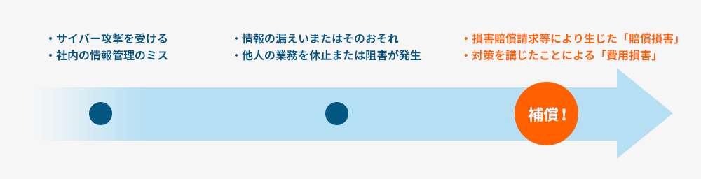 - サイバー攻撃を含めた「賠償損害」「費用損害」を補償する充実プランです。サイバー事故が発生した場合に最初から最後まで幅広くカバーします。