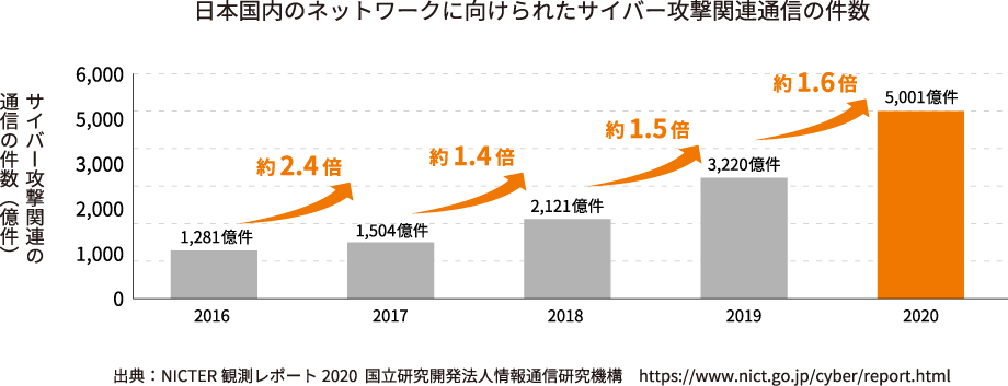 サイバー攻撃の増加・攻撃手法の高度化により、
